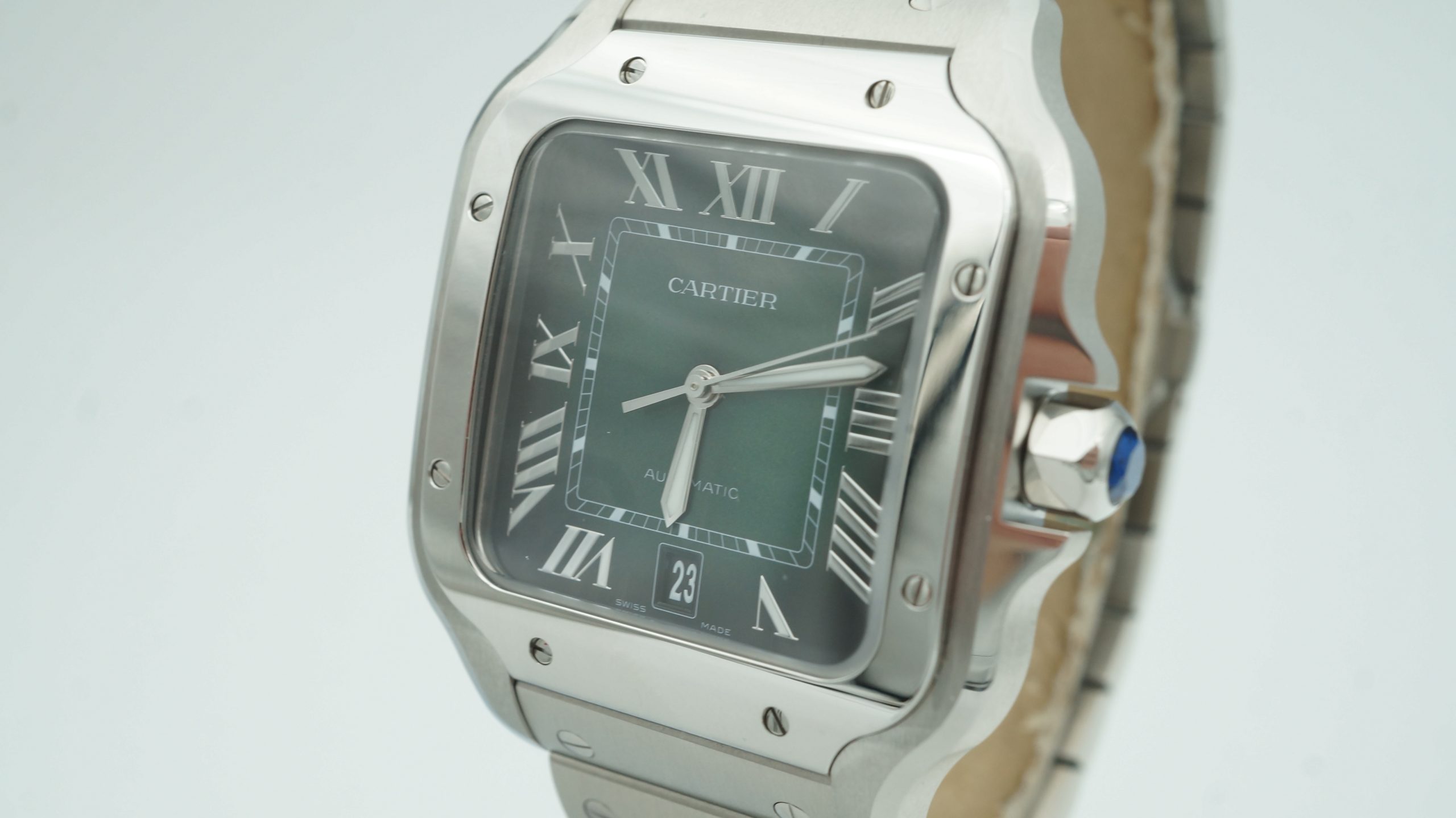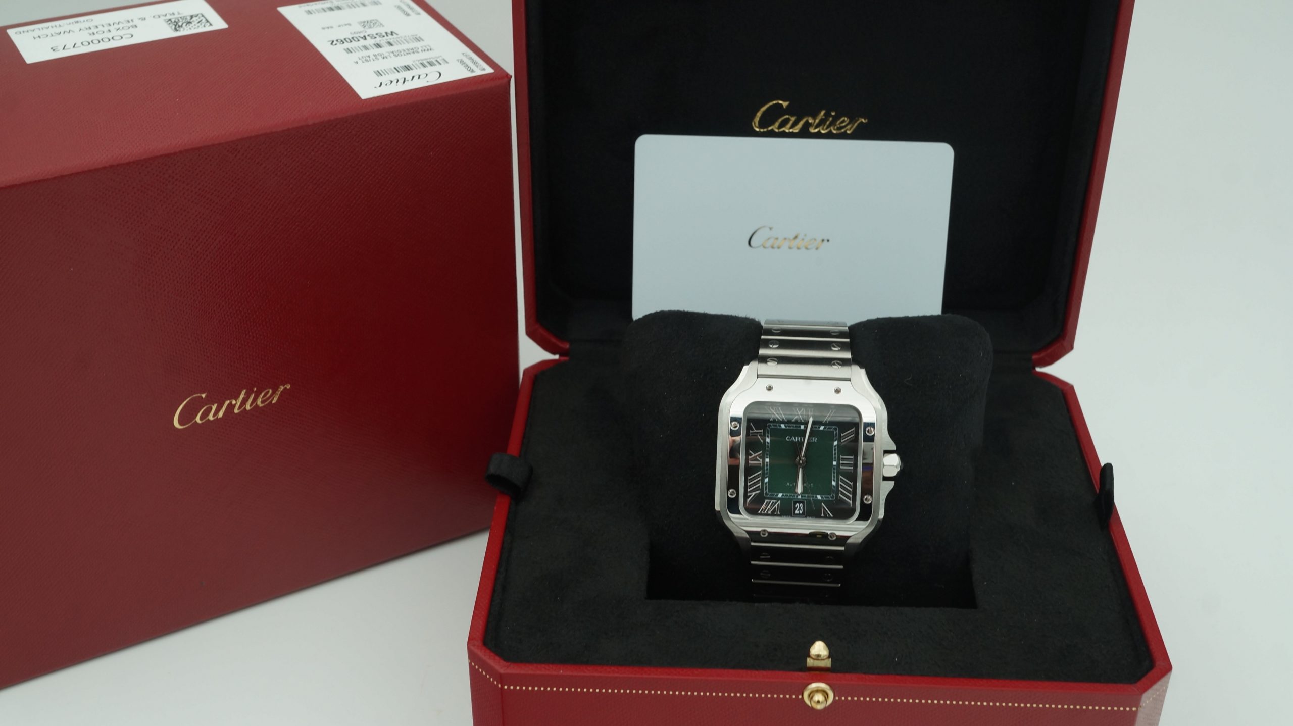 Cartier Santos De Cartier Large Çelik Yeşil Kadran SIFIR Kutu & SertifikaRef:WSSAA062