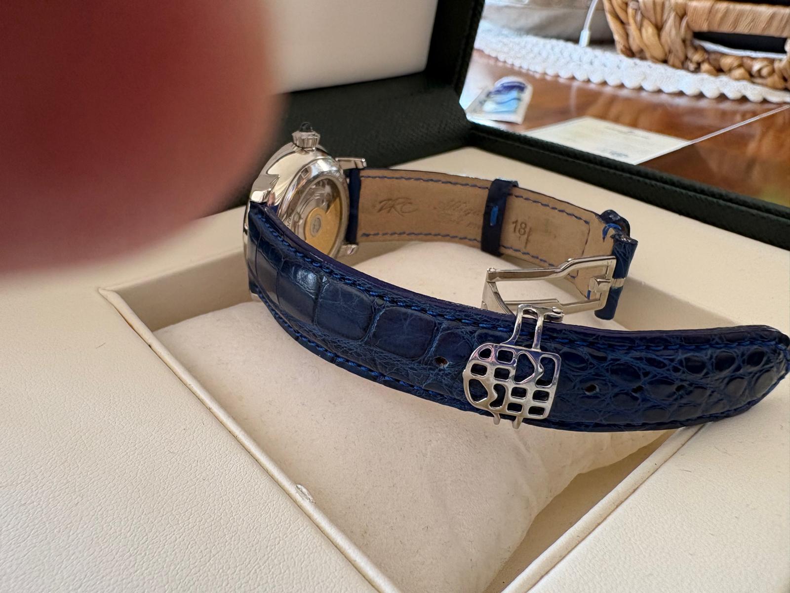 2018 yılında alınmış, çok titizlikle kullanılmış ve muhafaza edilmiştir. Kasasında ufak çizik dahi yoktur. Üzerinde İsviçre ZRC marka timsah derisi kayış vardır.