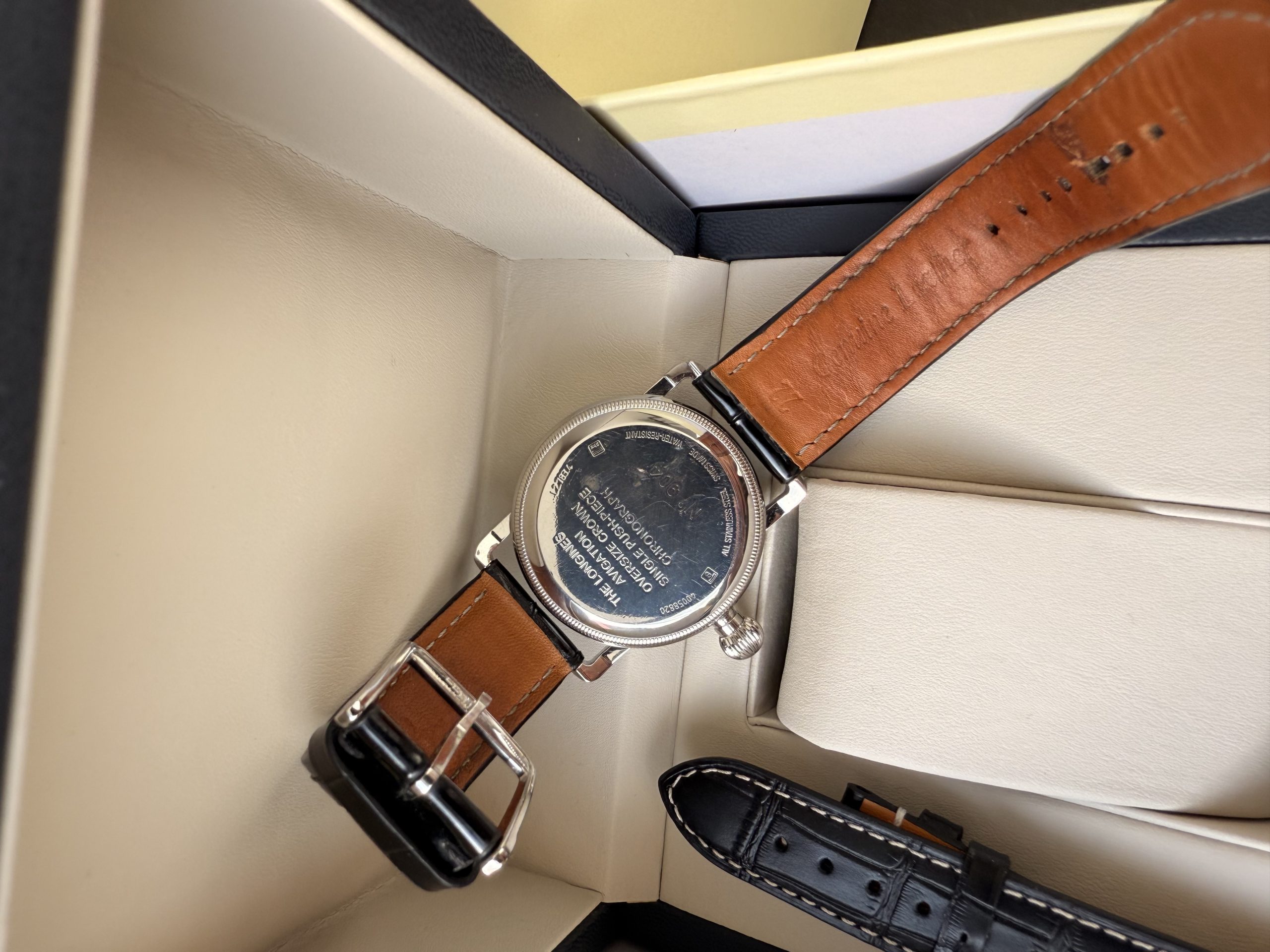 2018’de İtalya’dan alınıp az kullanılmış. Çok iyi kondisyonda Pilot modeli. 3 fonksiyonlu tepe. Kronograf, takvimli. Üzerindeki orijinal kayışı doğal oranda yıpranmış. Yedek, el yapımı deri kordon var.