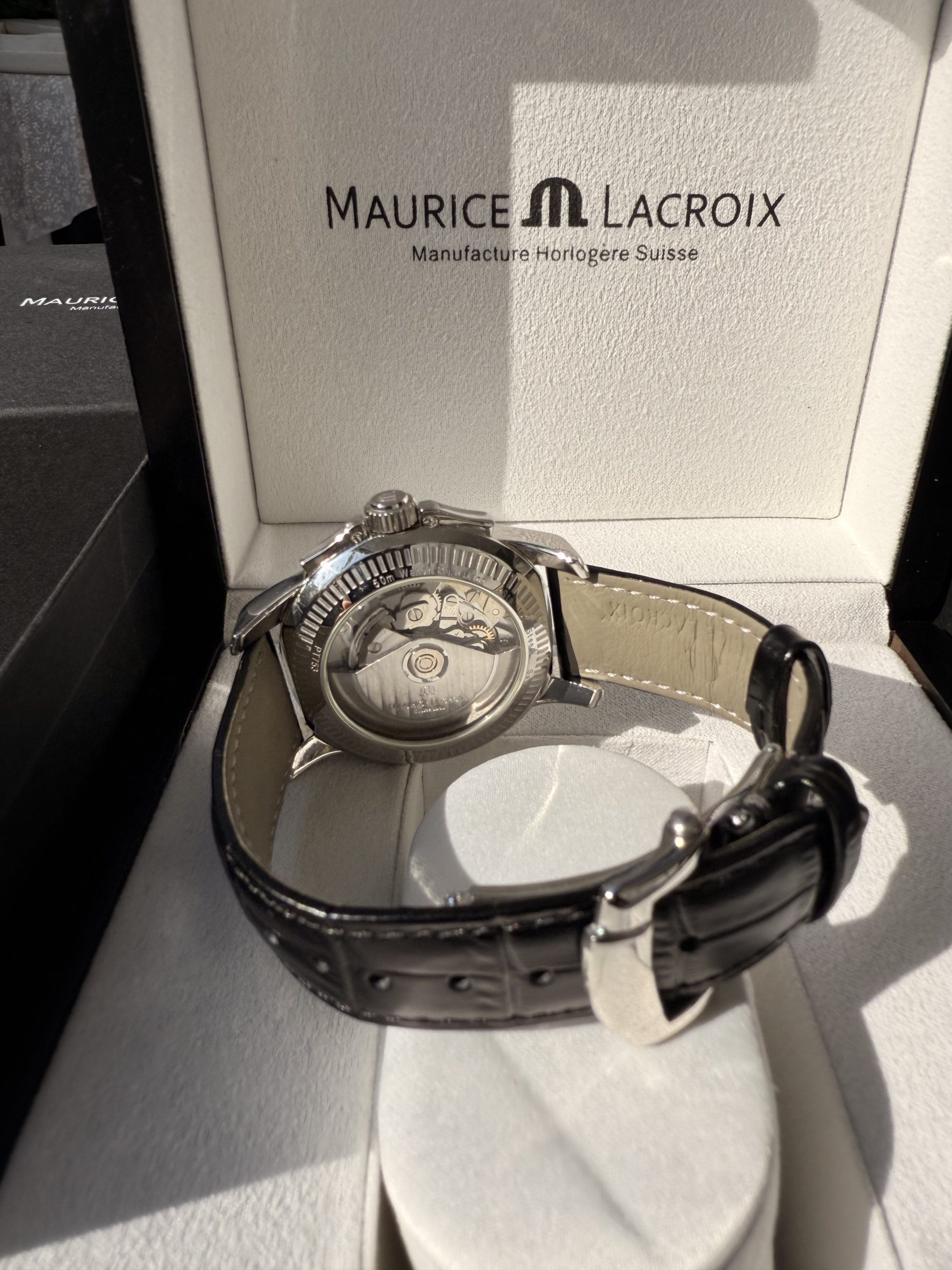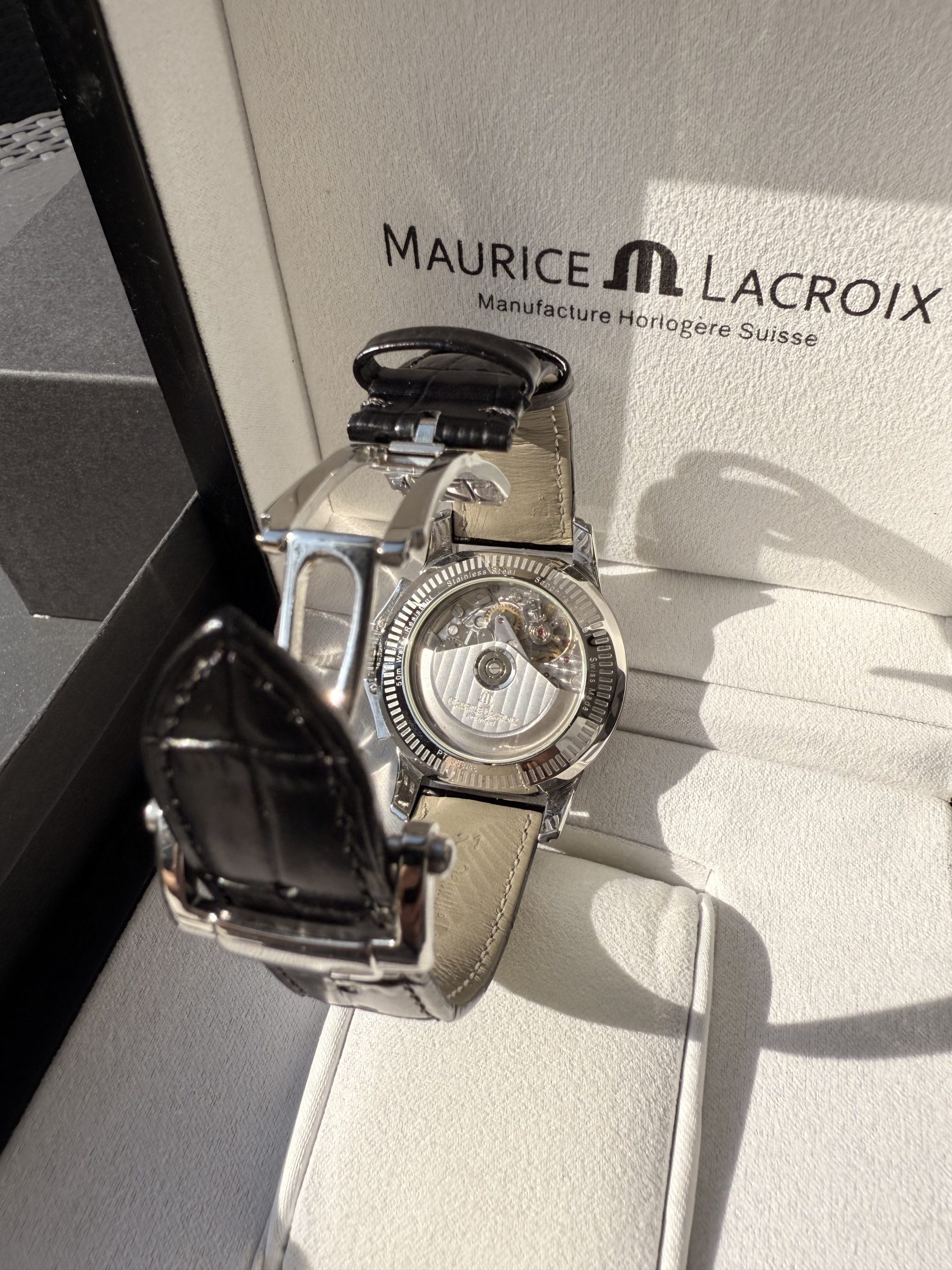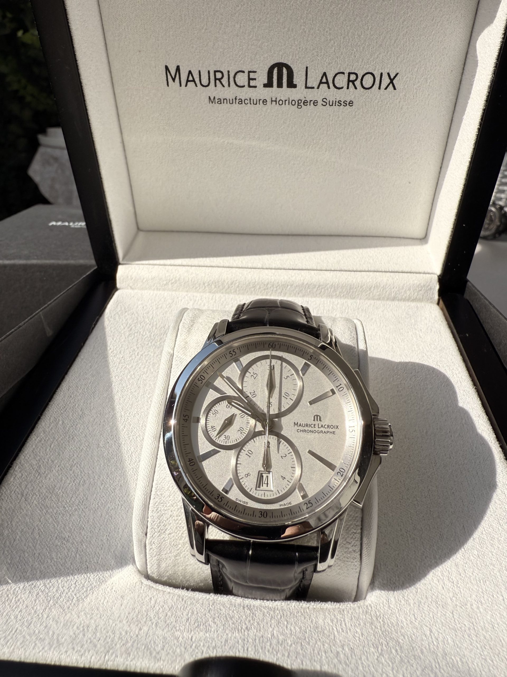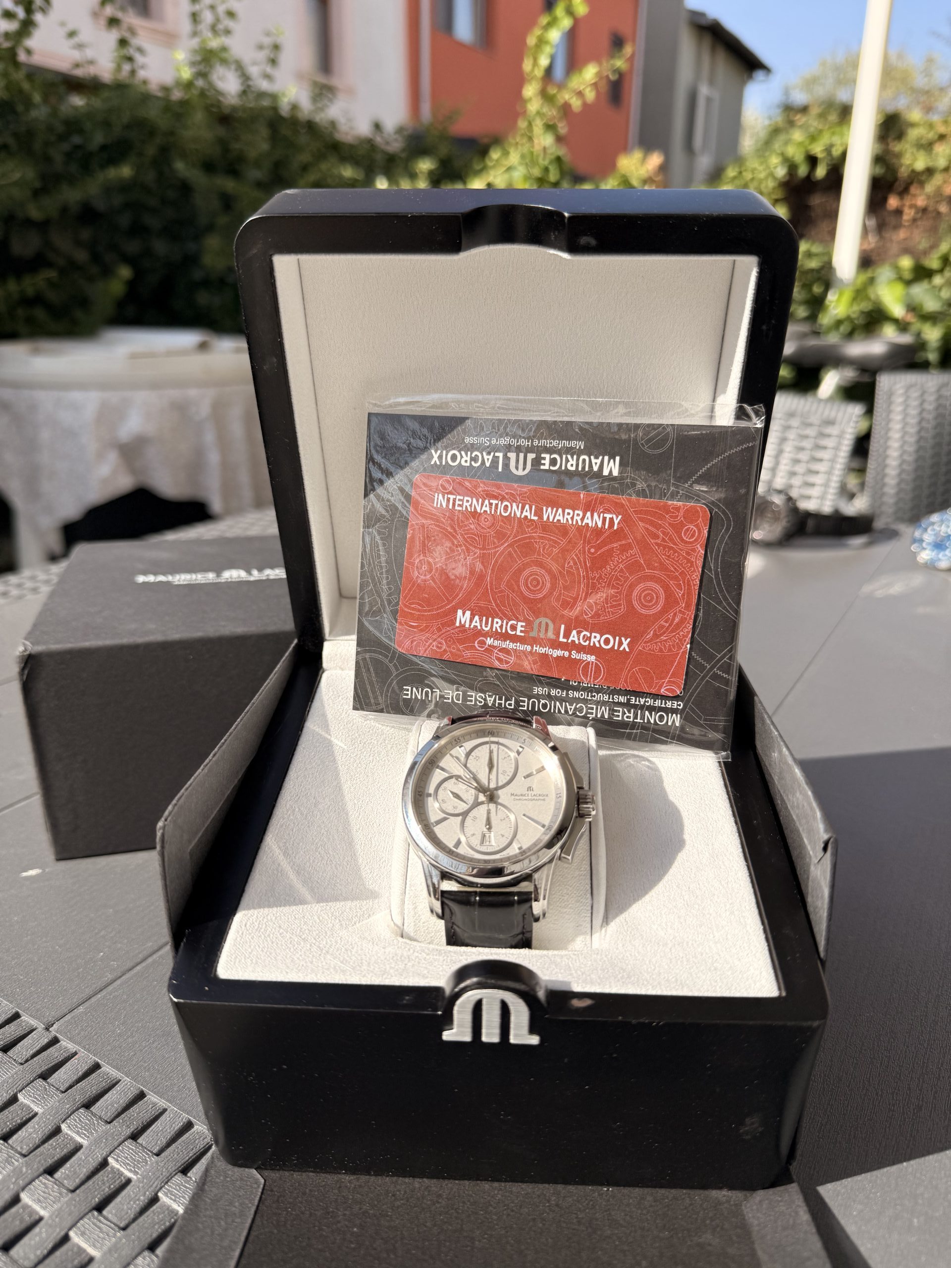 Saat sıfır ve ful set. Hiç kullanılmadı. Automatic Chronograph date.Safir kristal cam. Siyah deri kordon. Deployant çelik toka.