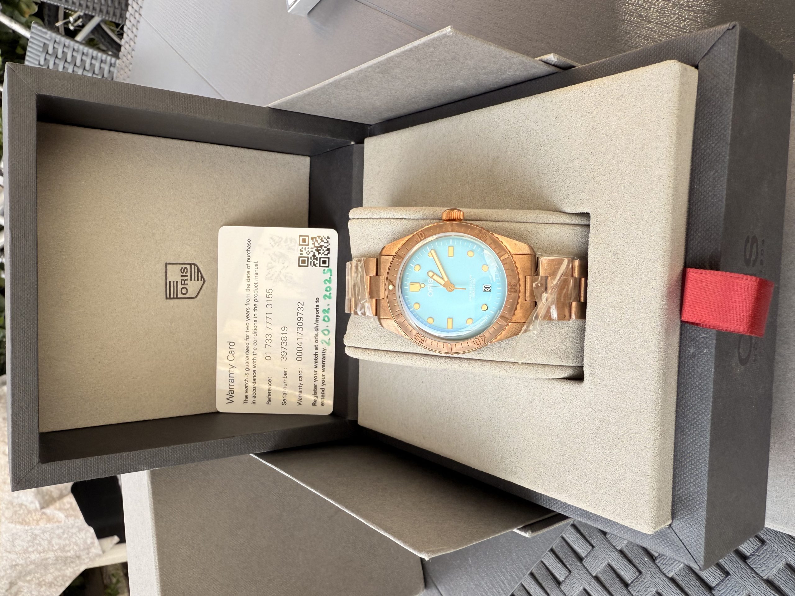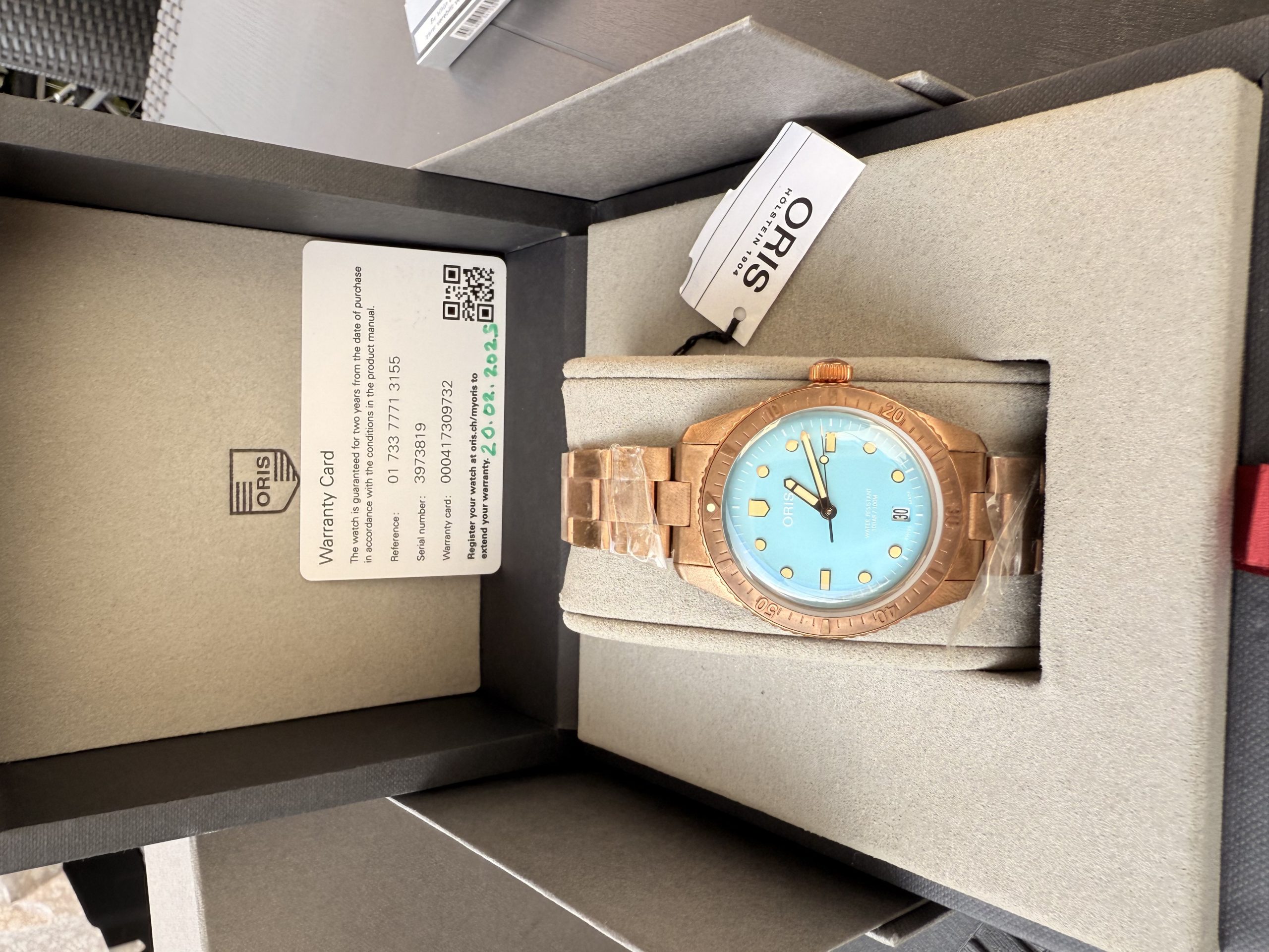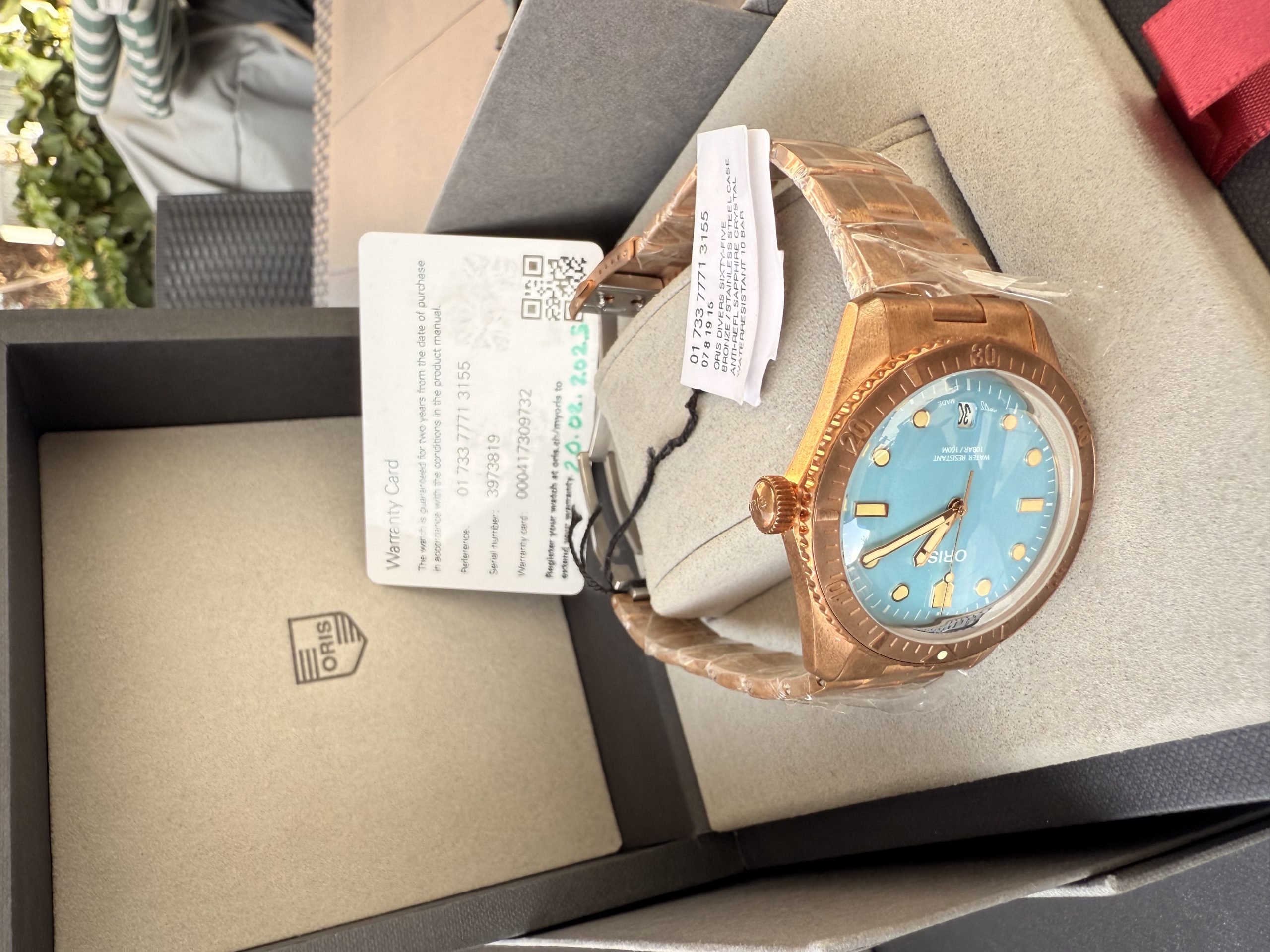 Saat Şubat 2025’te satın alınıp hiç kullanılmamıştır. Etiketi ve jelatinleri üzerinde. Otomatik, takvimli, bronz. Hem kadın hem erkeğe uygun.733 kalibre. 38 saat güç rezervi. Teknik özellikleri: Bronz tokalı,koyu kahve rengi deri kayış. Safir, her iki tarafta bombeli, yansıma önleyici iç kaplama. Paslanmaz çelik, özel işlemeler, vidalı. Saat, dakika ve saniye için merkezi ibreler, tarih penceresi, anlık tarih, tarih düzeltici, zaman ayarı, saniye ayarı.