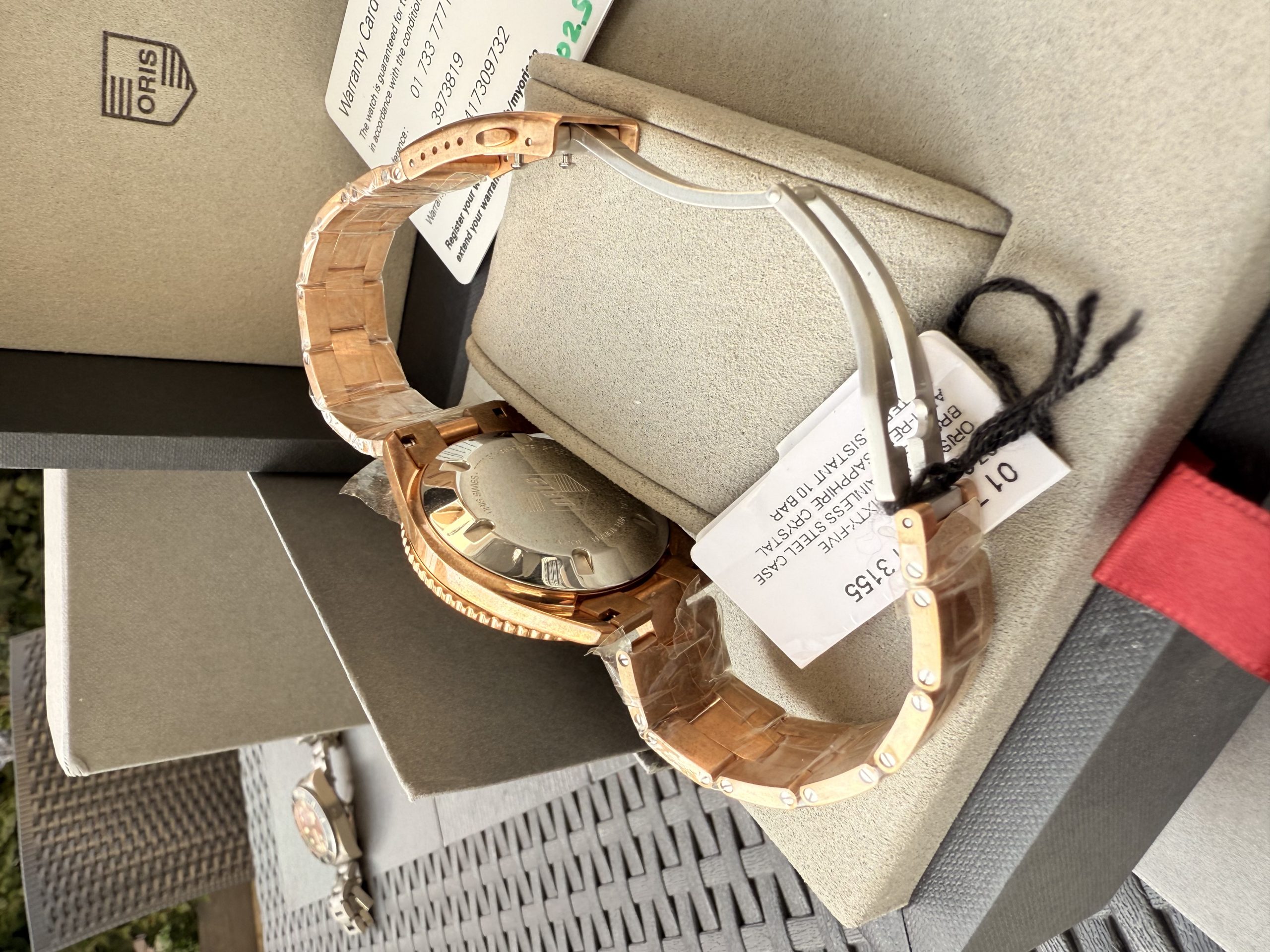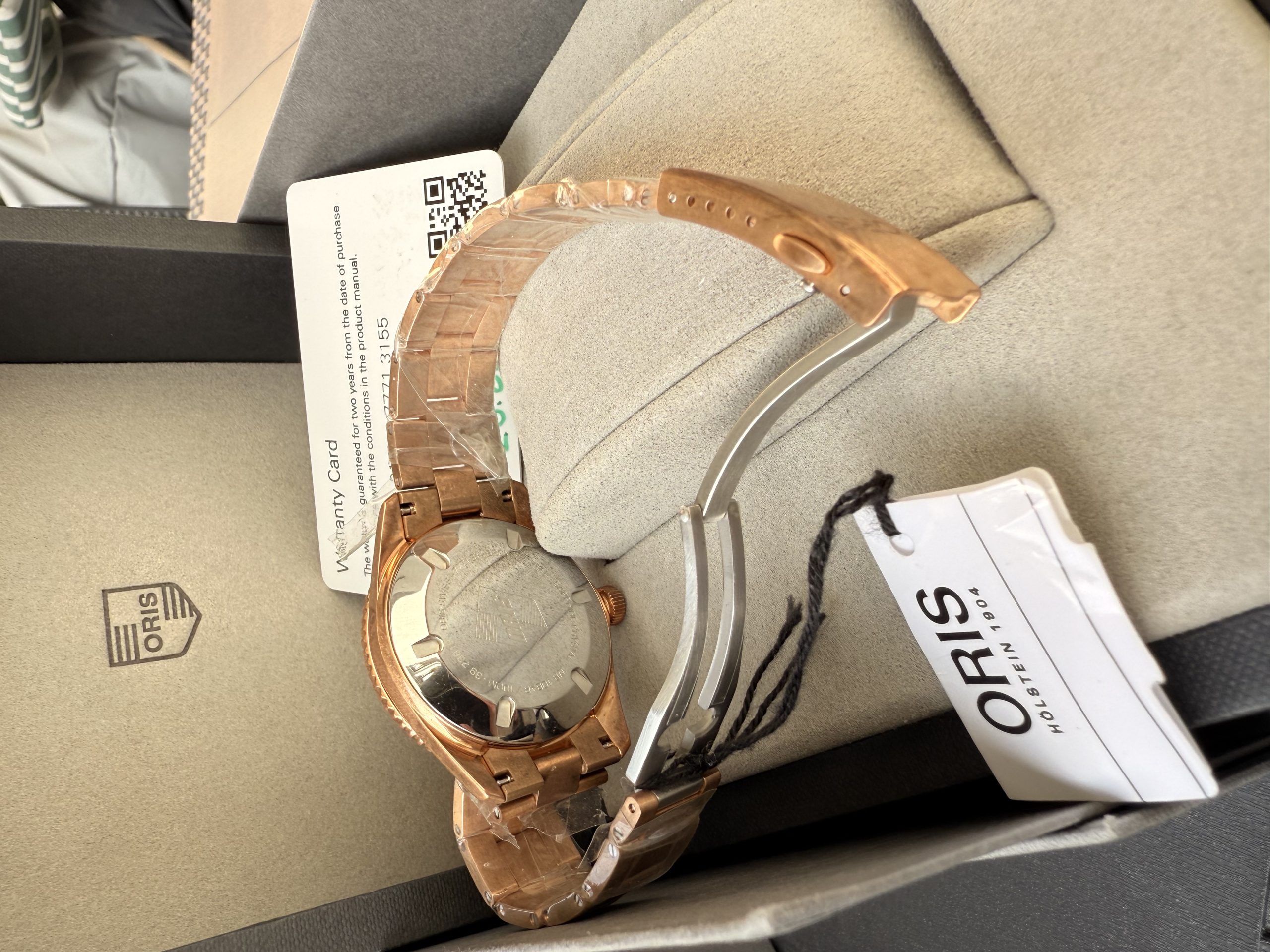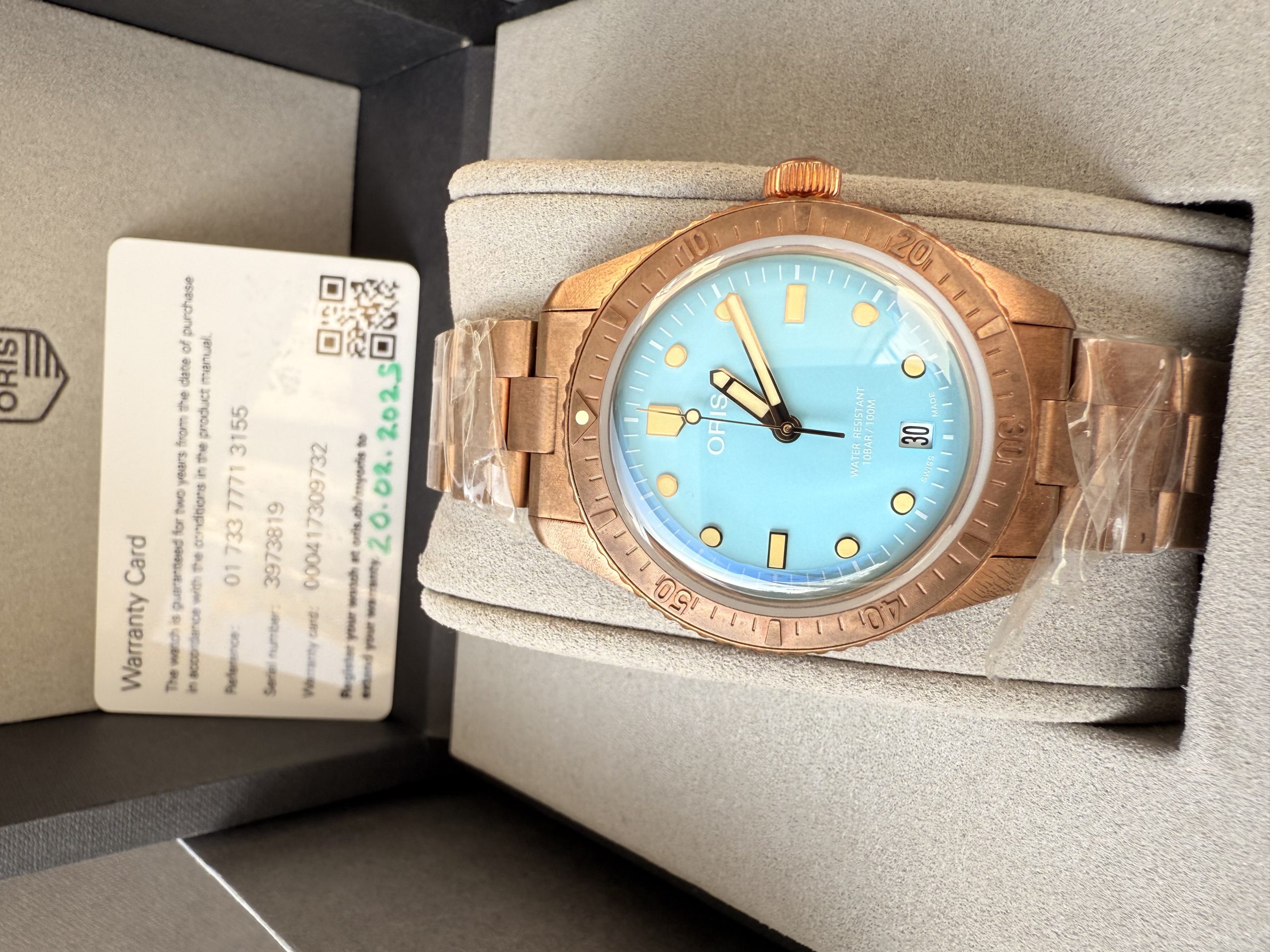 Saat Şubat 2025’te satın alınıp hiç kullanılmamıştır. Etiketi ve jelatinleri üzerinde. Otomatik, takvimli, bronz. Hem kadın hem erkeğe uygun.733 kalibre. 38 saat güç rezervi. Teknik özellikleri: Bronz tokalı,koyu kahve rengi deri kayış. Safir, her iki tarafta bombeli, yansıma önleyici iç kaplama. Paslanmaz çelik, özel işlemeler, vidalı. Saat, dakika ve saniye için merkezi ibreler, tarih penceresi, anlık tarih, tarih düzeltici, zaman ayarı, saniye ayarı.