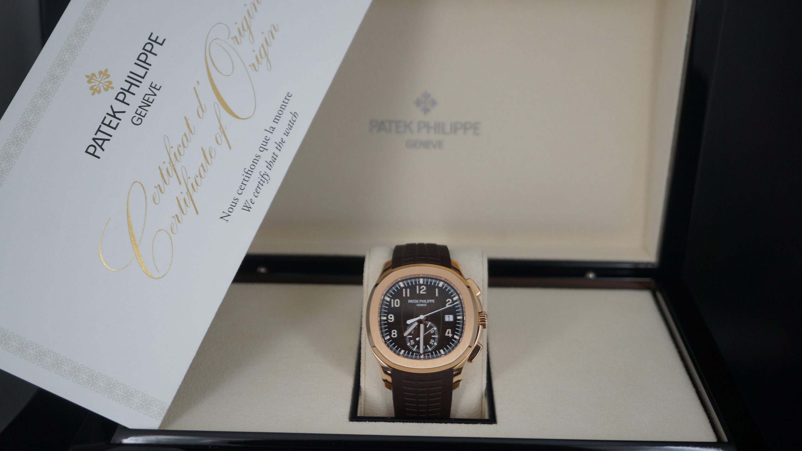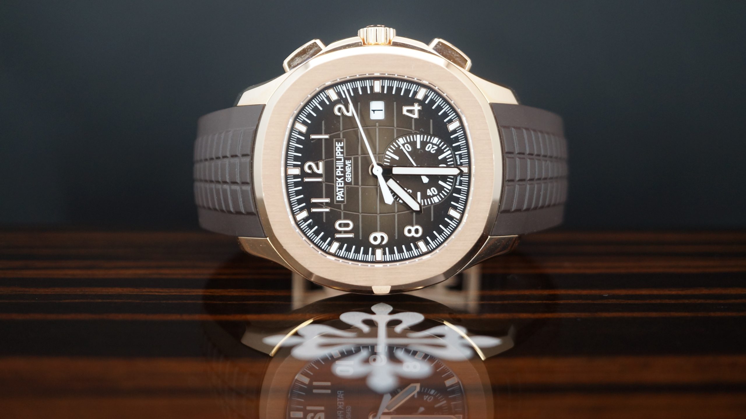 Patek Philippe Aquanaut Chronograph 42mm Rose Altın Kasa Rubber Bilezik Kutu & Sertifika 5968R-001