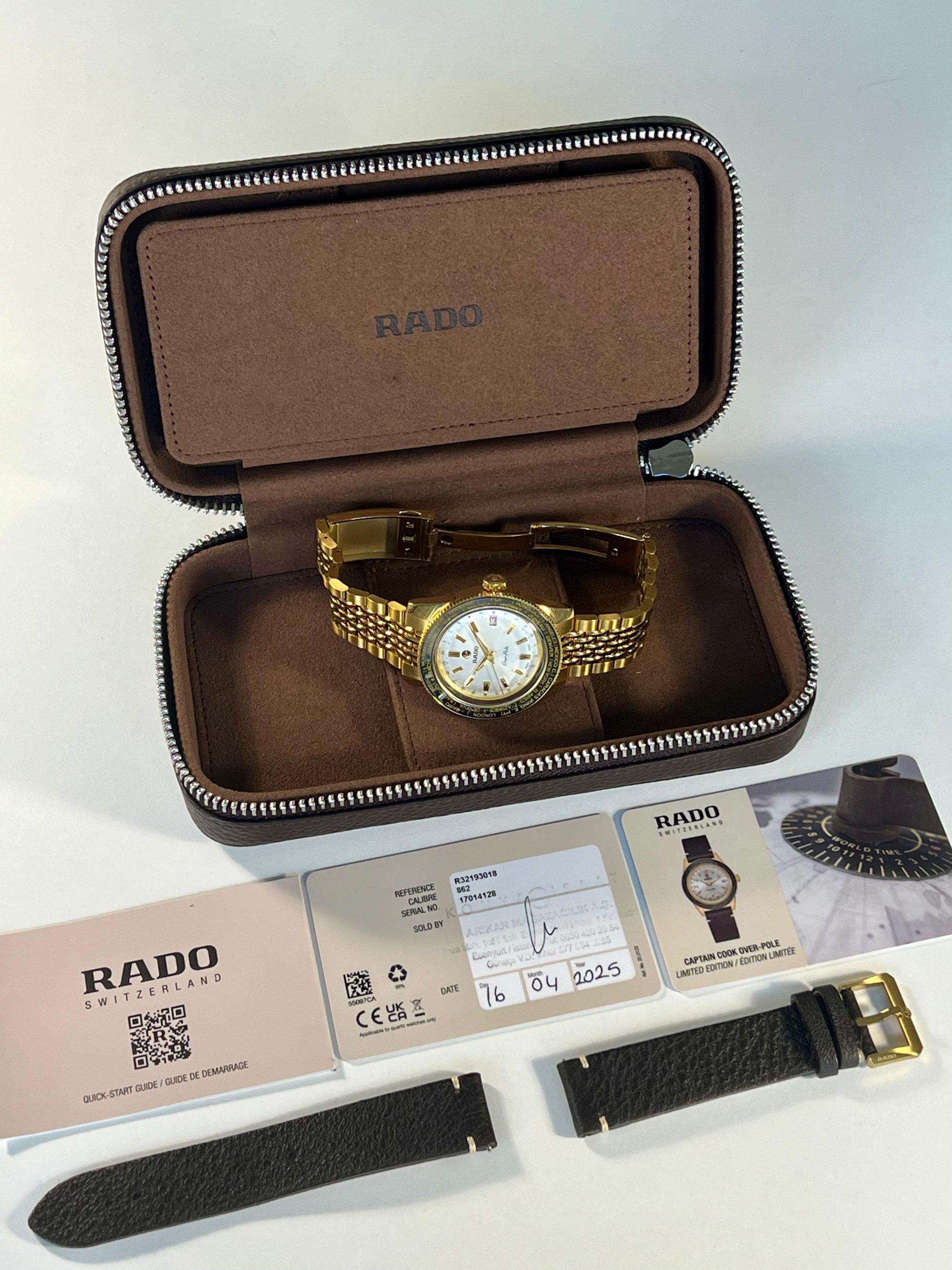 RADO OVER POLE – LİMİTED EDİTİON 16.04.2025 Konyalı Saat Çıkışlı, 1962 adet limitli üretimden 269. saattir. Full set hatasızdır. Rado resmi sitesinden orijinallik teyitlidir. Tümü satıldıktan sonra LİMİTLİ seri olduğundan meraklısı için koleksiyon parçası olabilecek niteliktedir. Saat koleksiyonum dolayısı ile almıştım, birkaç kez hariç takmaya fırsat olmadı. Dolayısı ile sıfır ayarındadır. Tüm kutu içeriği ile birlikte teslim edilecektir.