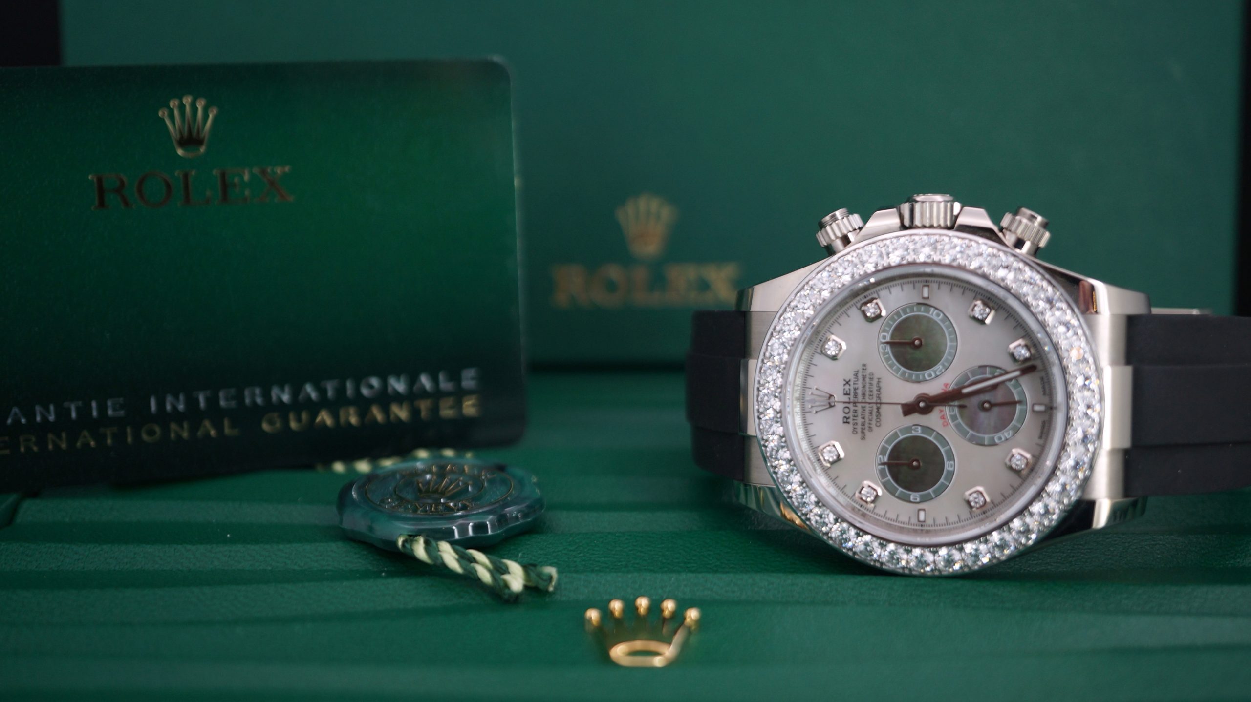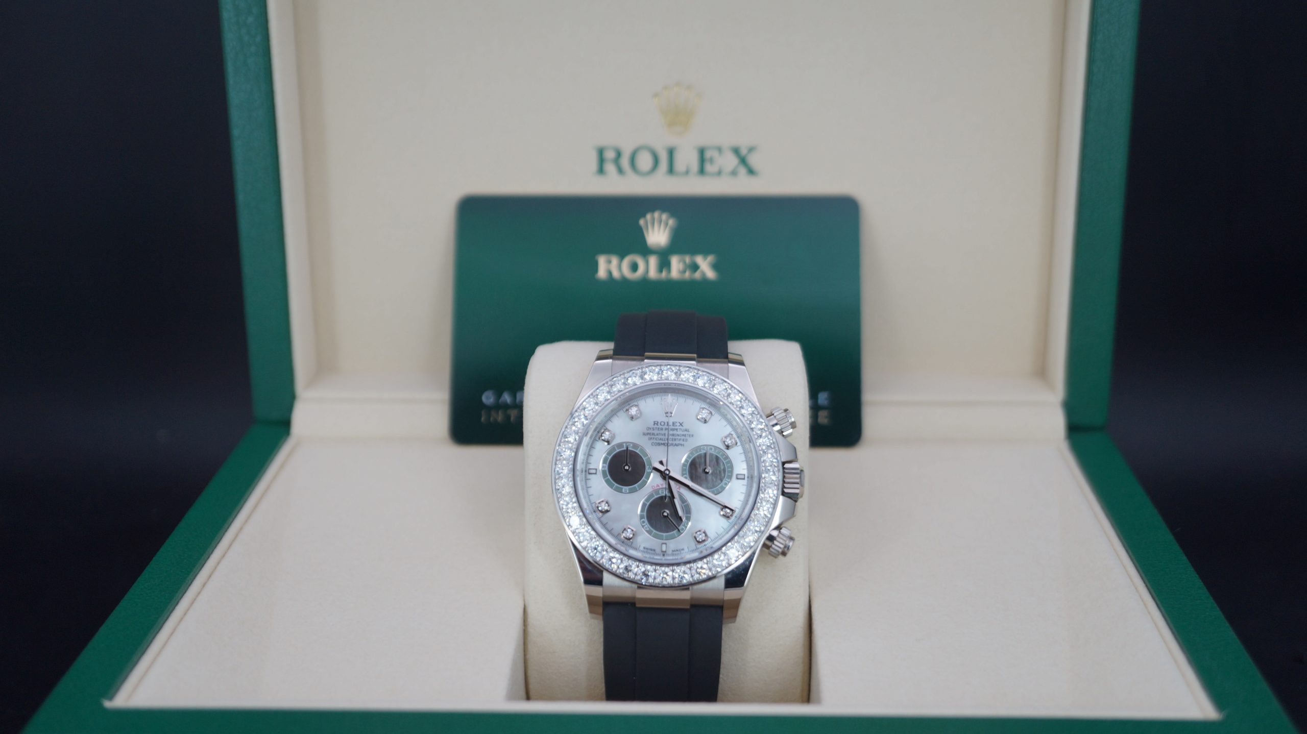 Rolex Daytona 40mm Beyaz Altın Sedef Kadran Pırlantalı Kadran ve Bezel Kutu & Sertifika Full SET Ref:126589RBR