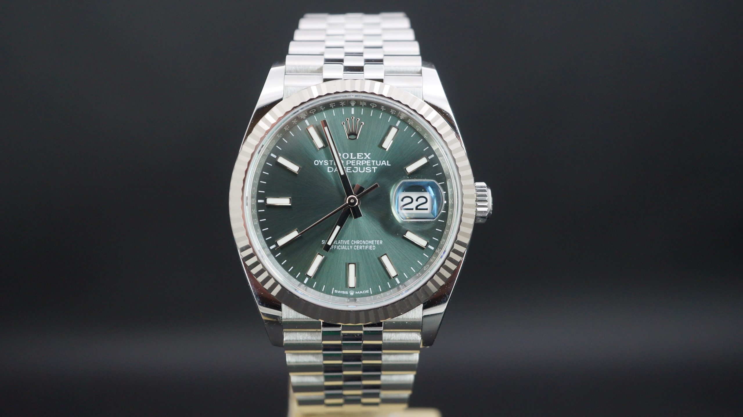 Rolex Datejust 36mm Çelik Yeşil Kadran Jubilee Bilezik Kutu & Sertifika Ref:126234