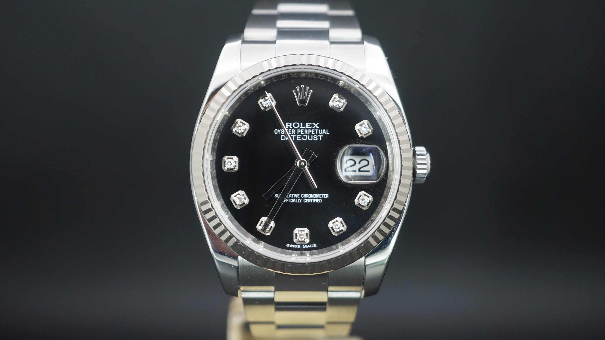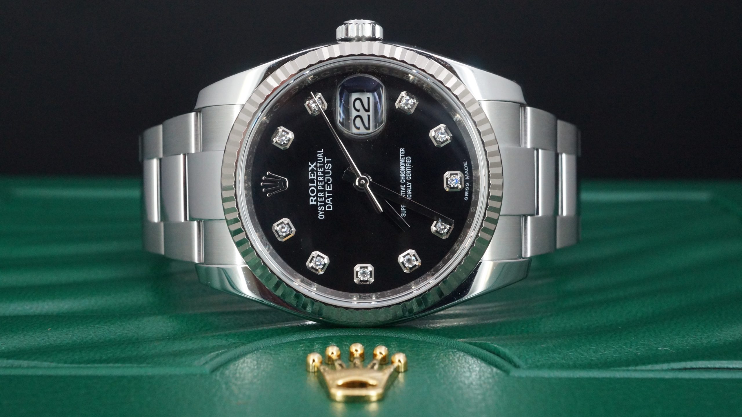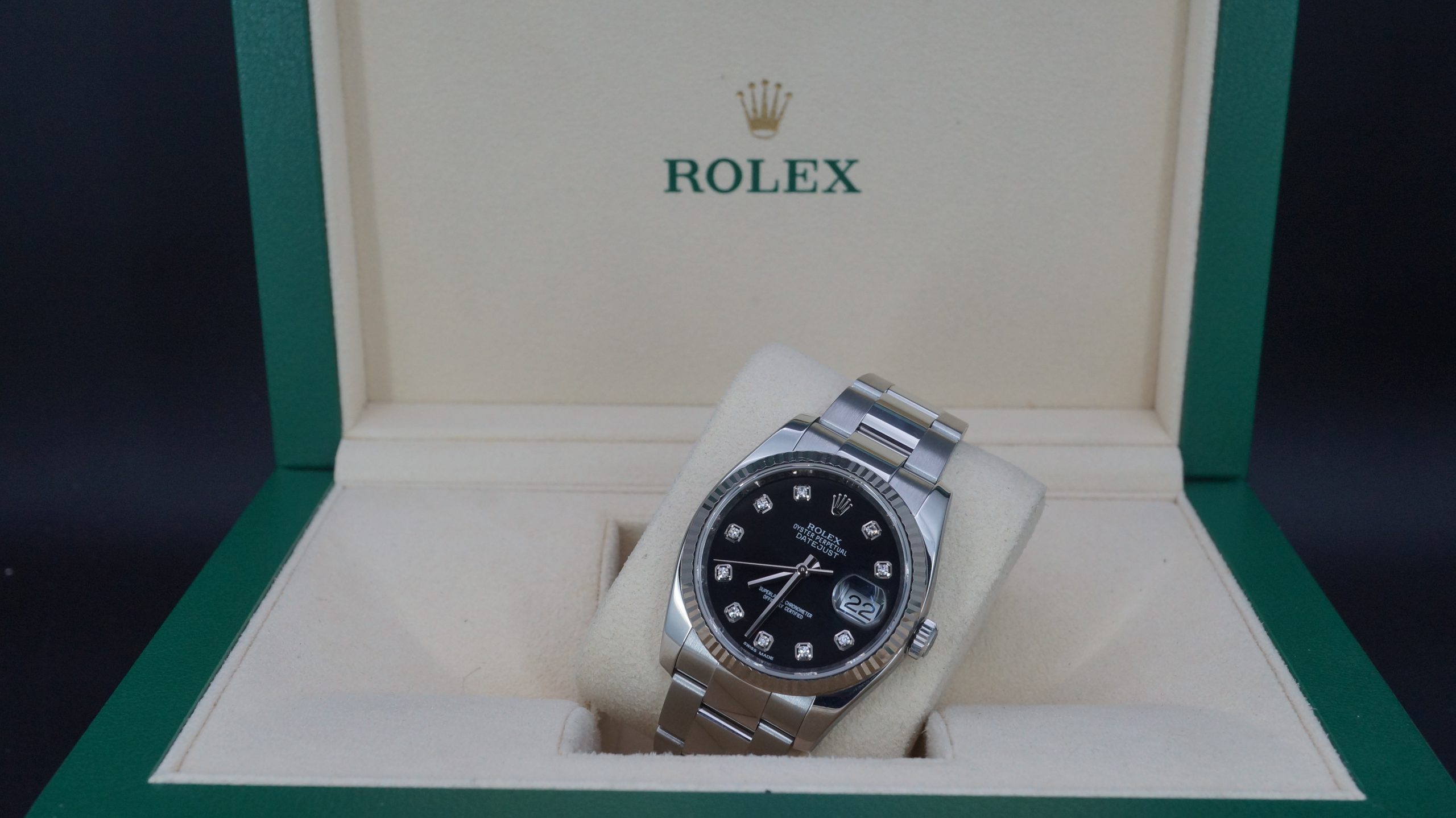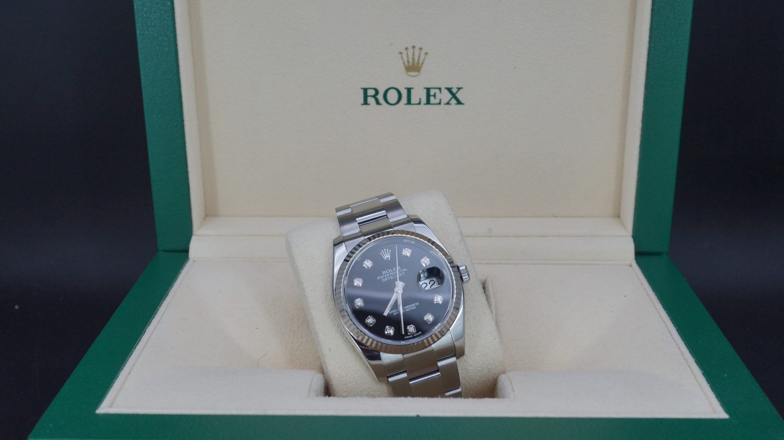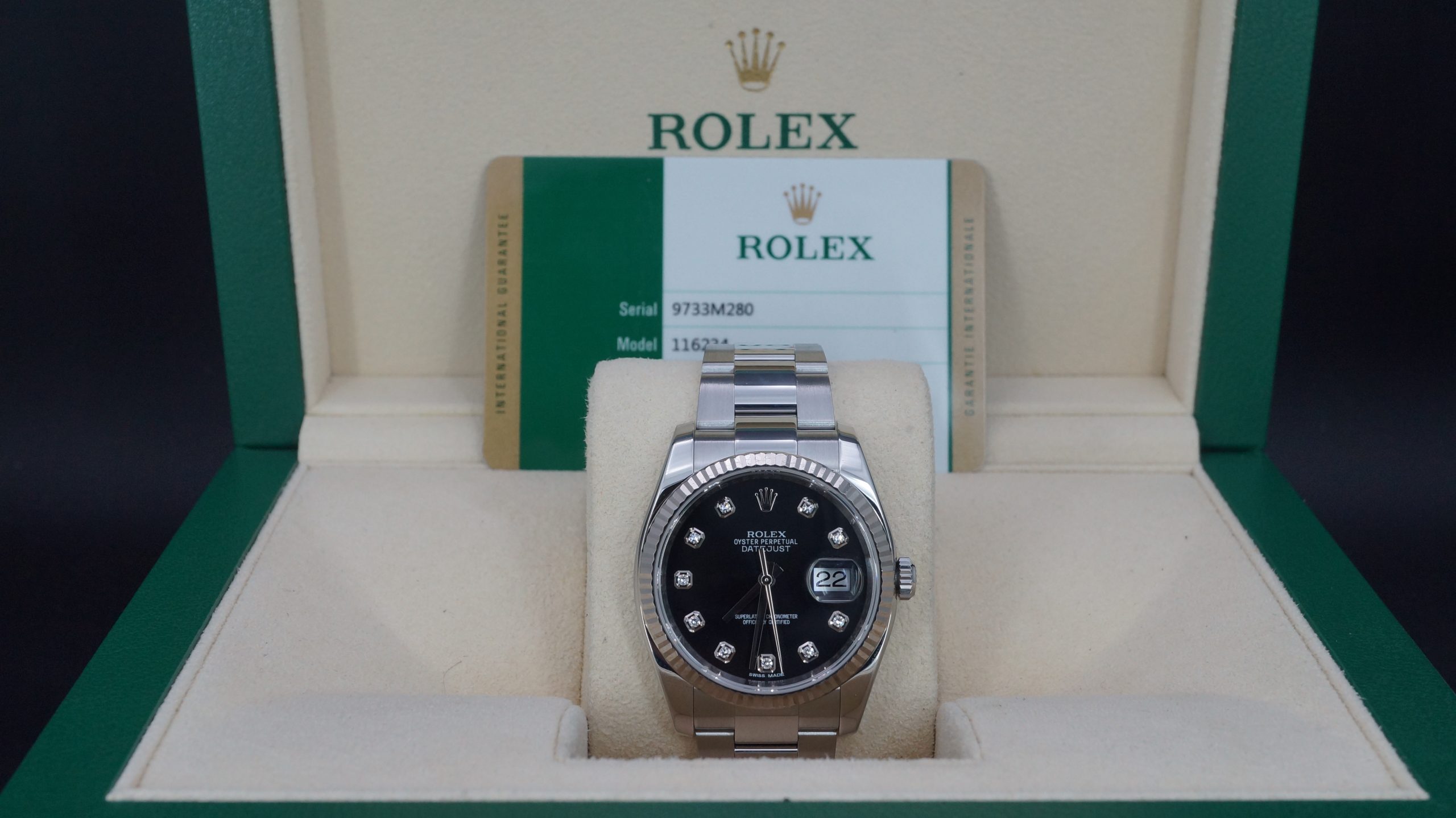 Rolex Datejust 36mm Çelik Siyah Pırlantalı Kadran Kutu & Sertifika Ref:116234