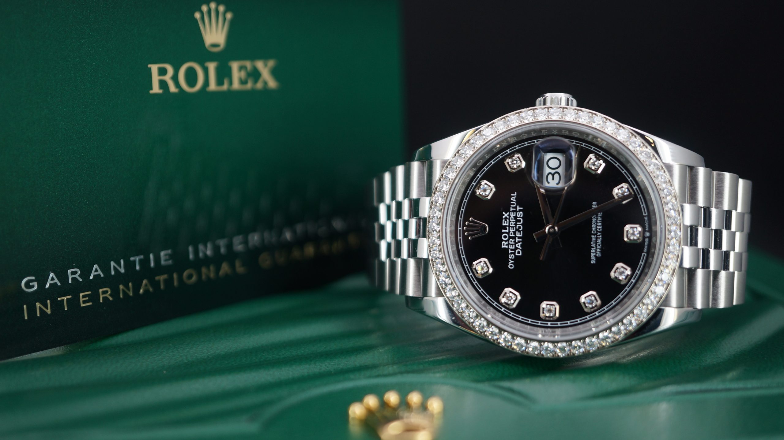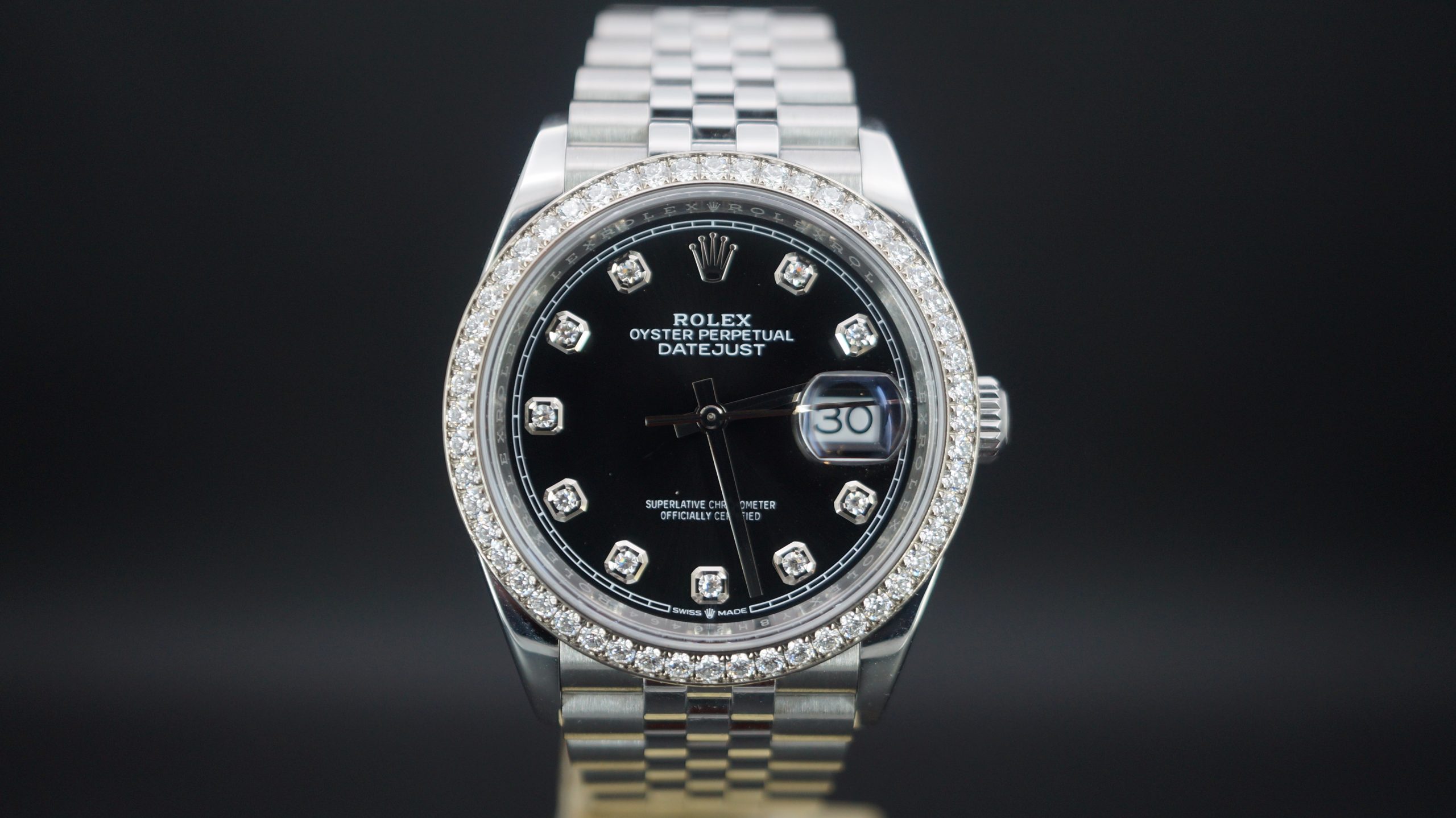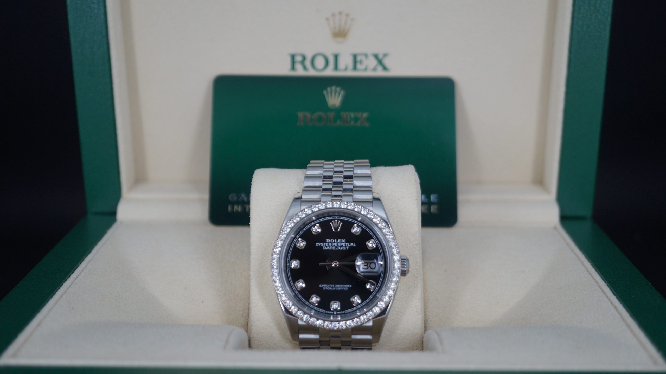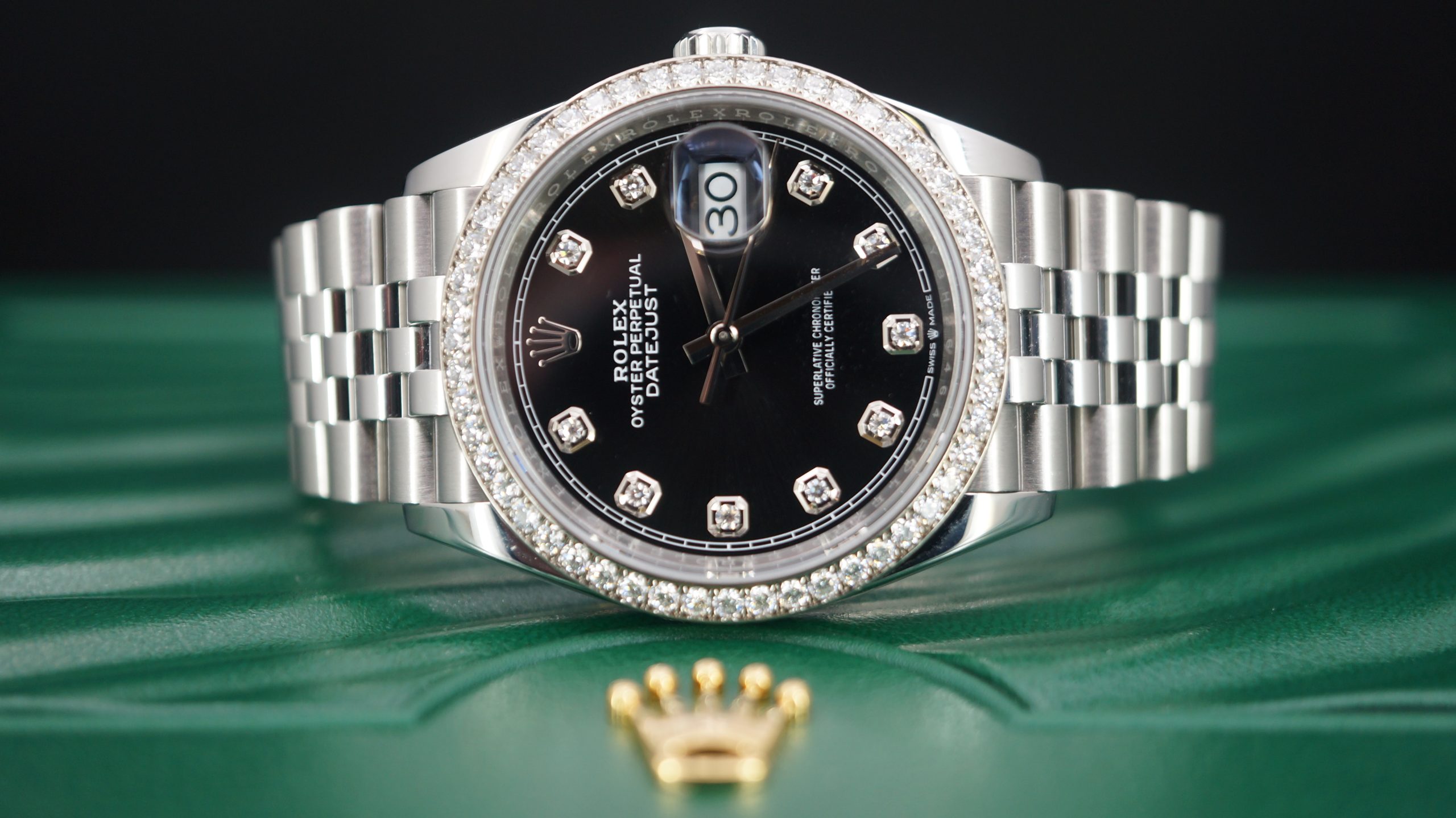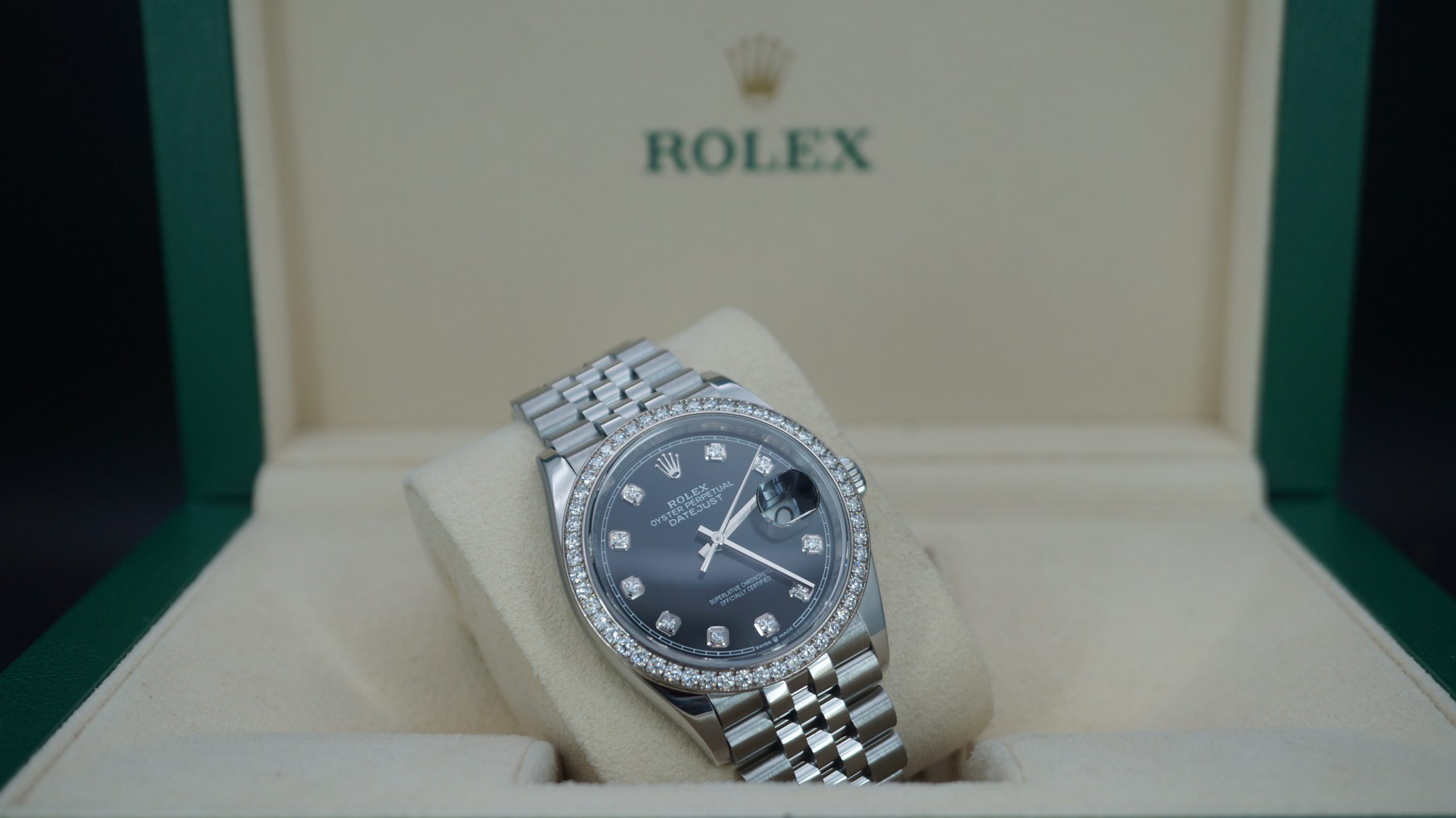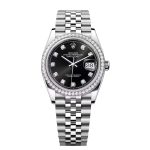 36mm Çelik Pırlantalı Siyah Kadran ve Bezel, Jubilee Bilezik Kutu & Sertifika 2023 Ref:126284RBR