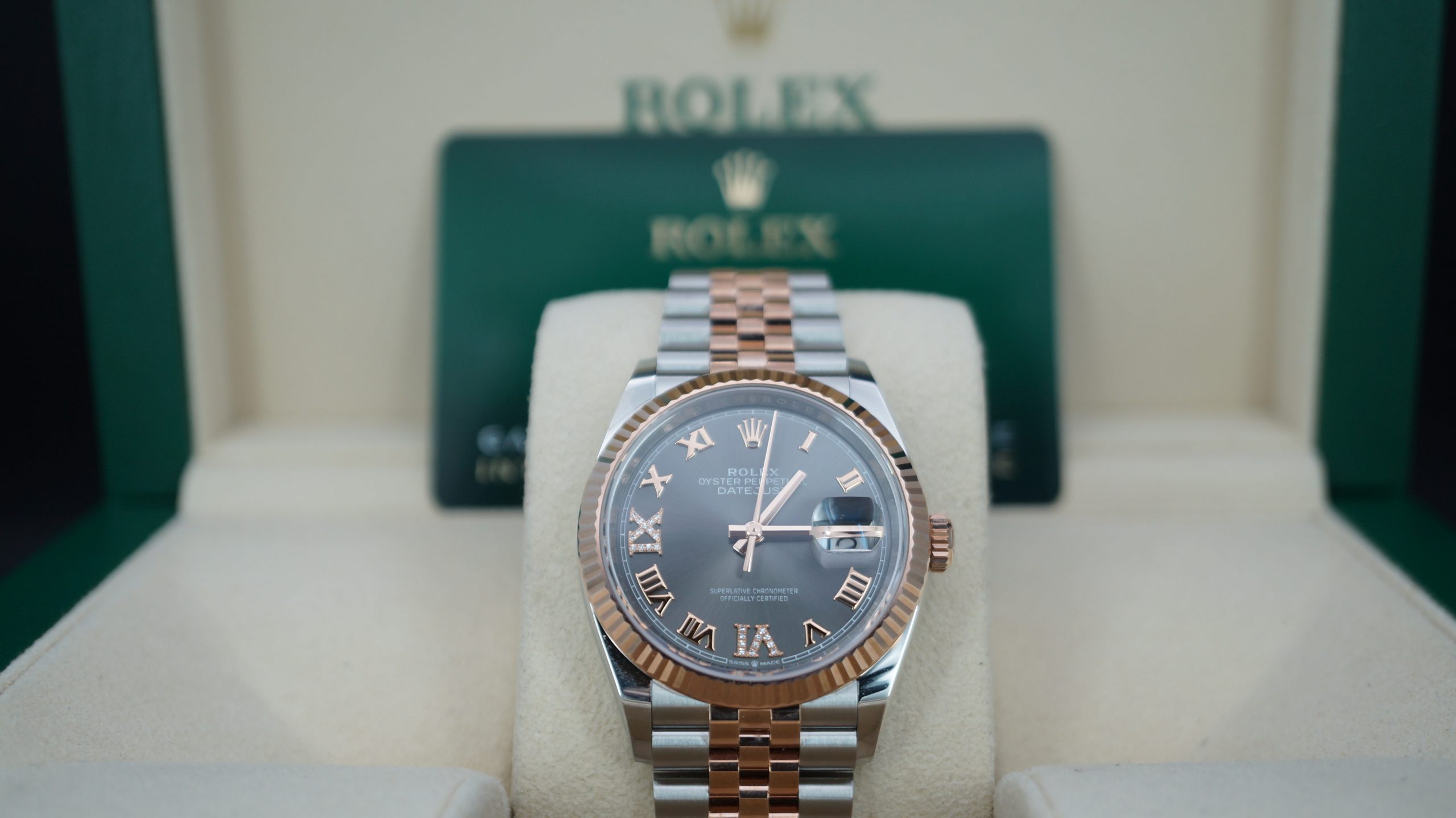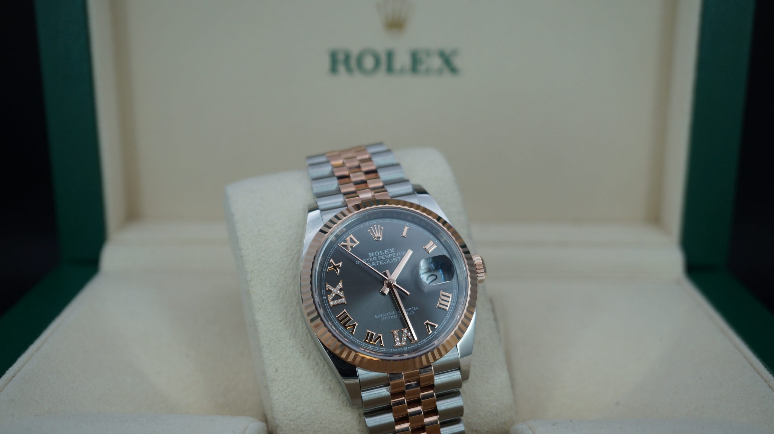 36mm Çelik /Rose Altın 6/9 Pırlantalı Gri Kadran Jubilee Bilezik Full Stickerlı SIFIR !!! Kutu & Sertifika Ref:126231