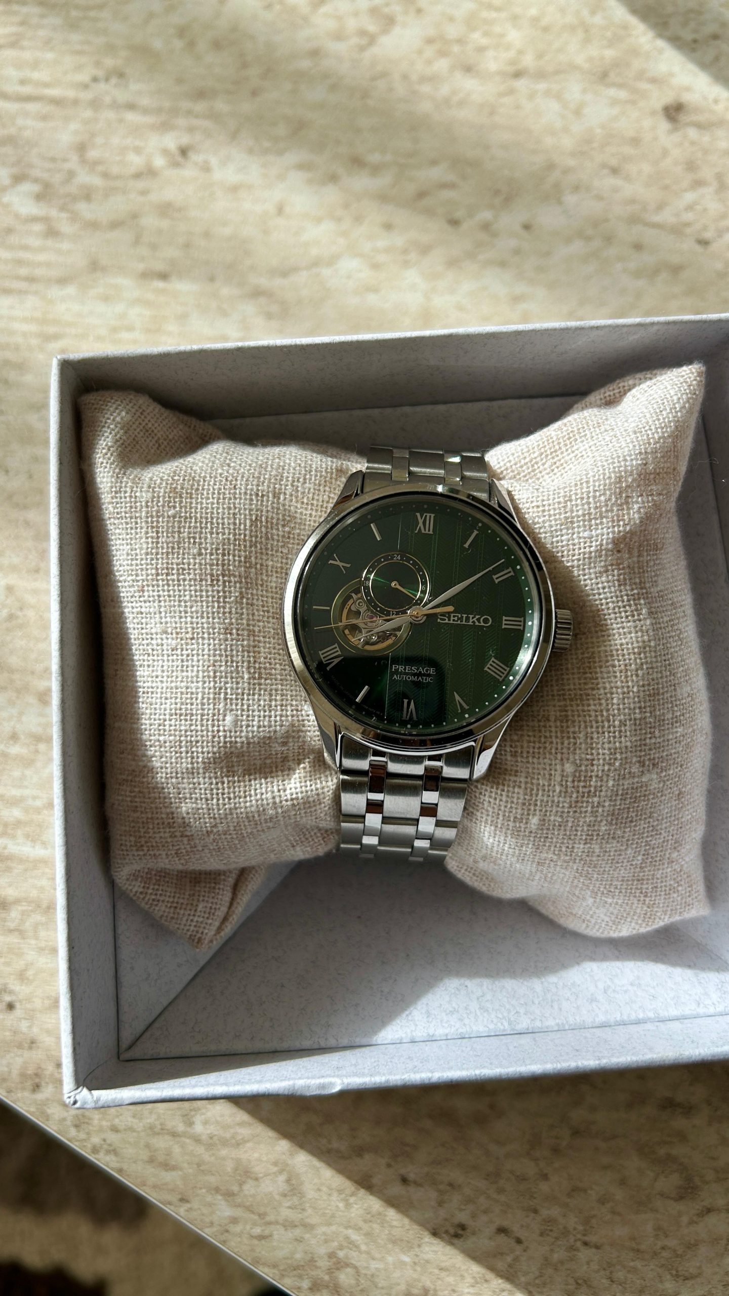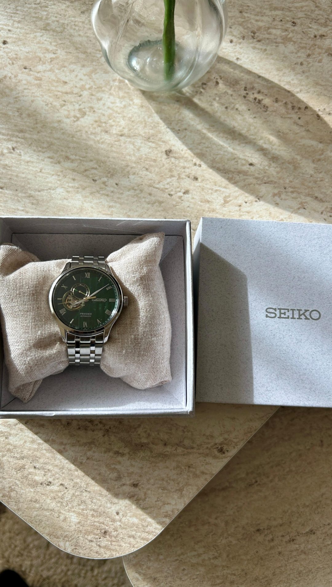 Seiko Presage marka haki-gümüş erkek kol saati. Garantili ve hiç kullanılmadı.