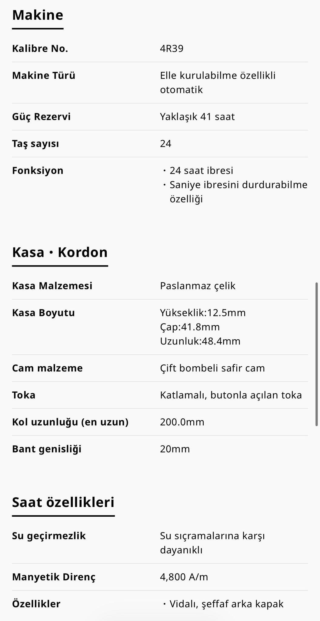 | Kasa Çapı | yükseklik 12.5mm çap 41.8mm uzunluk 48.4mm |
