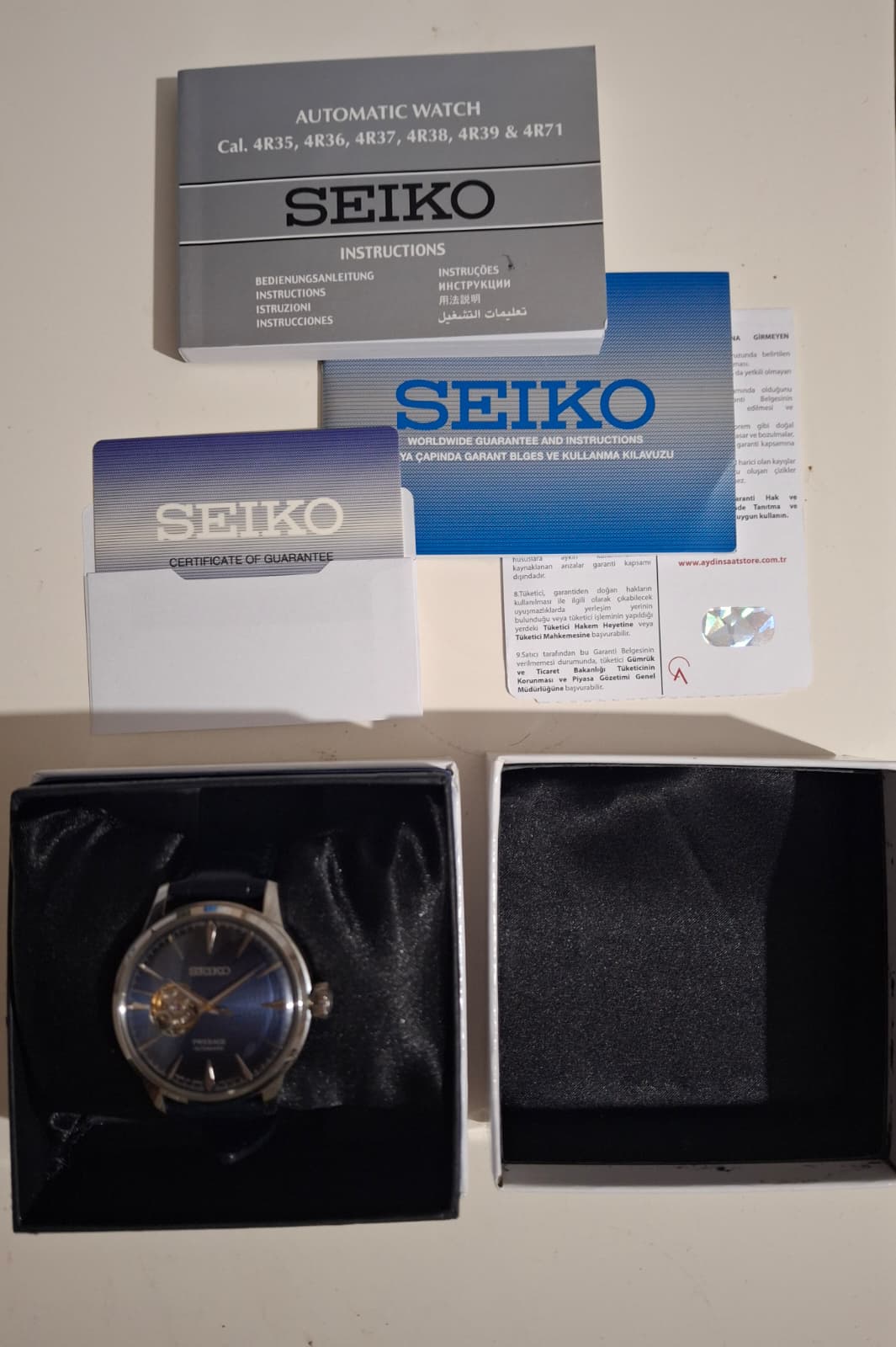 Günlük hayatta Ne çok Seyrek, ne de Çok fazla kullanımı vardır. (Haftada en az 1 Kere kullanırım.) Saat 19.8.2024 de Saat&Saat Exc’den alınmadır ve Aydın Saat tarafından belge üzerinde 2 Yıllık garanti ibaresi bulunmaktadır. Kutusunda ise Yırtık ve Yıpranma bulunmaktadır. Resimleri teker, teker ekledim .Saati satılığa çıkarma sebebim ise artık kullanmaya doyduğum için içindir. Büyük bir Hevesle aldığım ilk Dress Watch Saatimdir. SSA405 Referans numaralı bu Saati Seiko’nun kendi sitesinde özelliklerine Bakarak bilgi edinebilirsiniz.