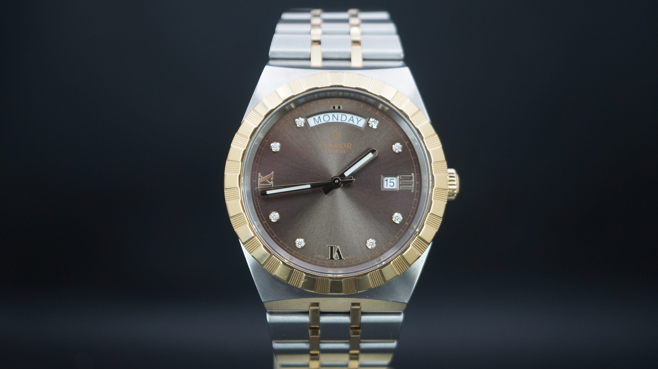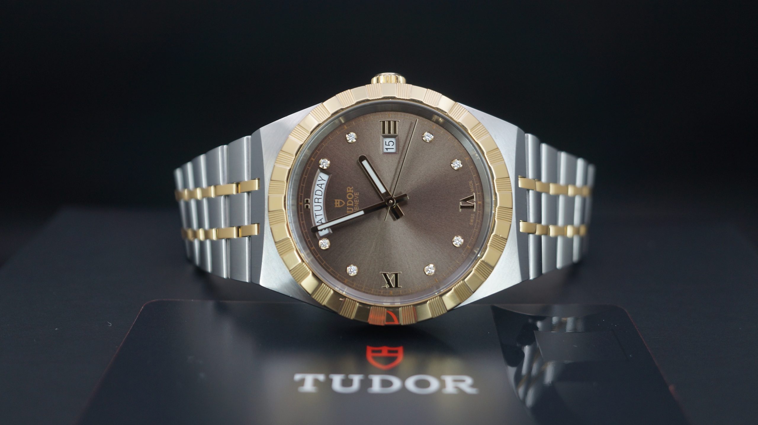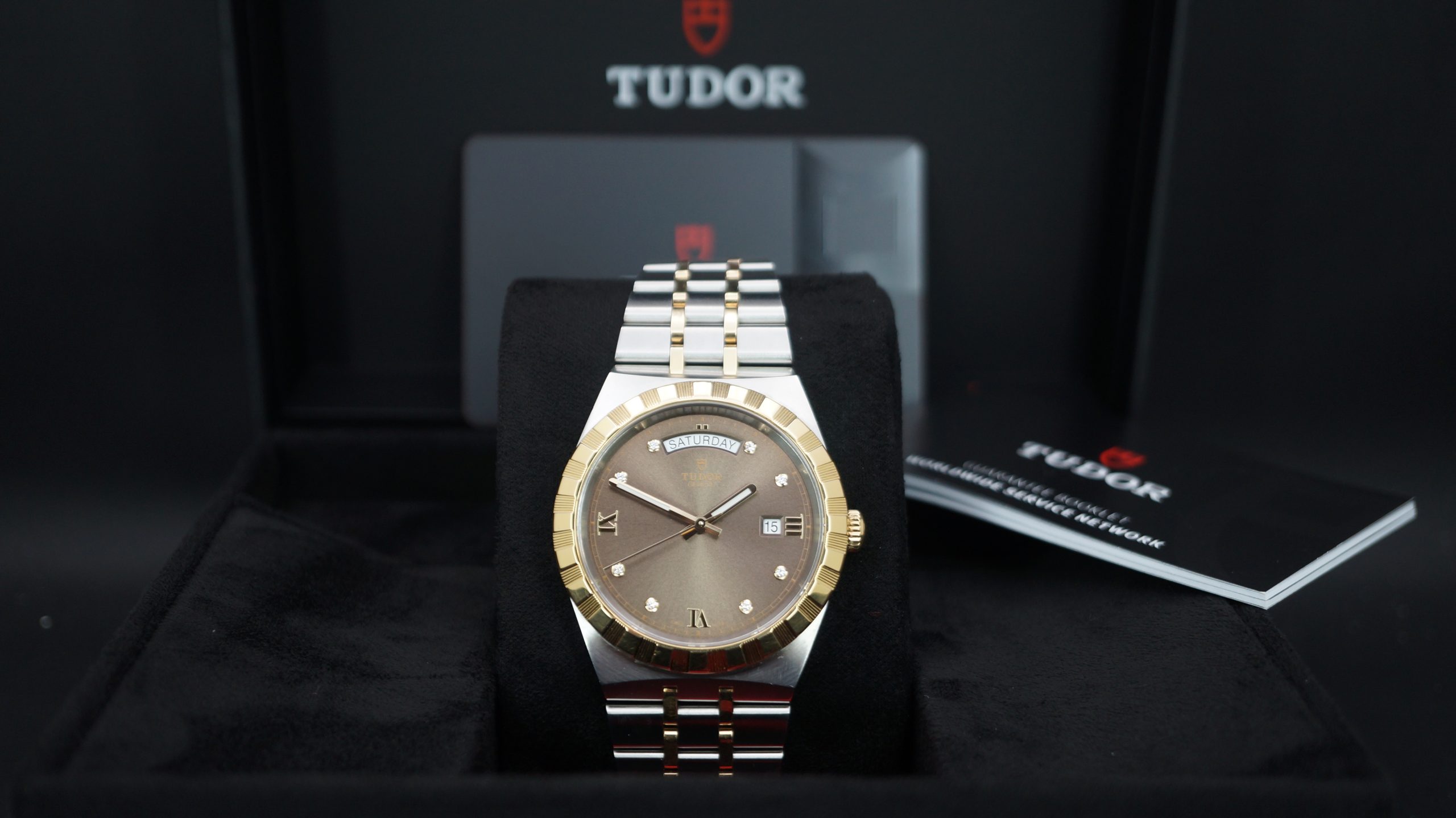 Tudor Royal 41mm Çelik /Altın Pırlantalı Çikolata Kadran Kutu & Sertifika Ref:M28603